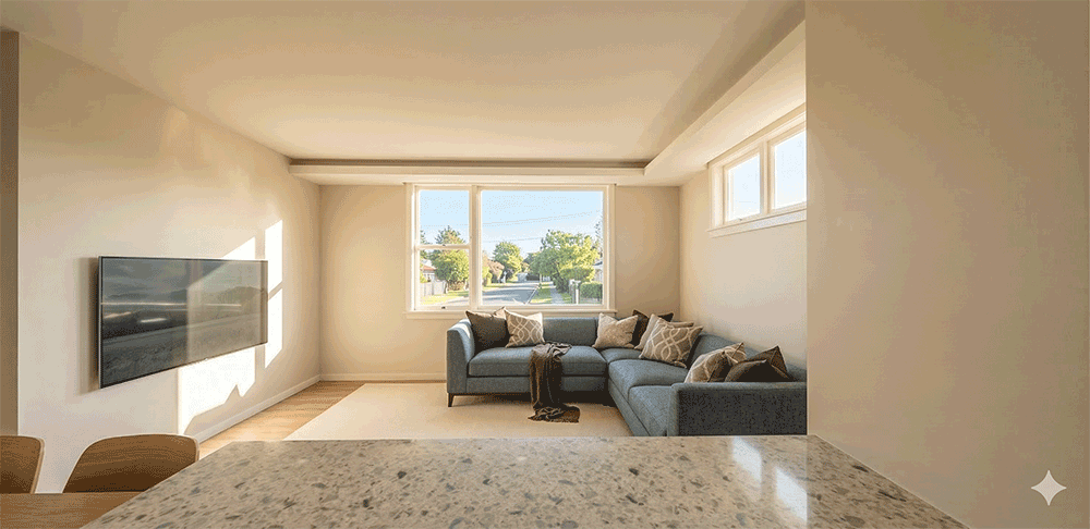周囲の視線を気にせず、光と風をたっぷり採り込める2階リビング。3階建てだからこそ実現できる、空に近い開放感とプライバシーの両立。南向きの窓から注ぐ柔らかな日差しが、家族の時間を明るく彩ります。